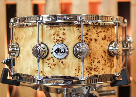 DW Collector's Cherry Mahogany Natural Lacquer over Mapa Burl Exotic Snare Drum
