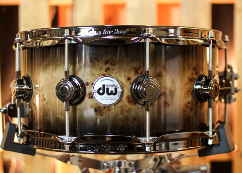 DW Collector's Contemporary Classic Natural to Candy Black Burst over Mapa Burl Snare Drum