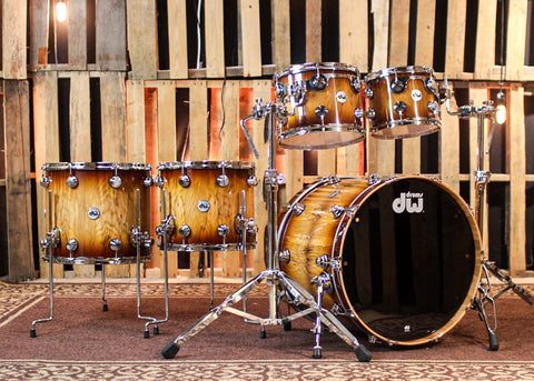 DW Collector's Maple 333 Rich Burnt Toast Burst over Vertical Olive Ash Burl Drum Set