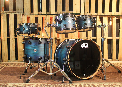 DW Collector's Pure Oak HVLT Hard Satin Azure over Light Ebony Stain Knockdown to Black Burst Drum Set